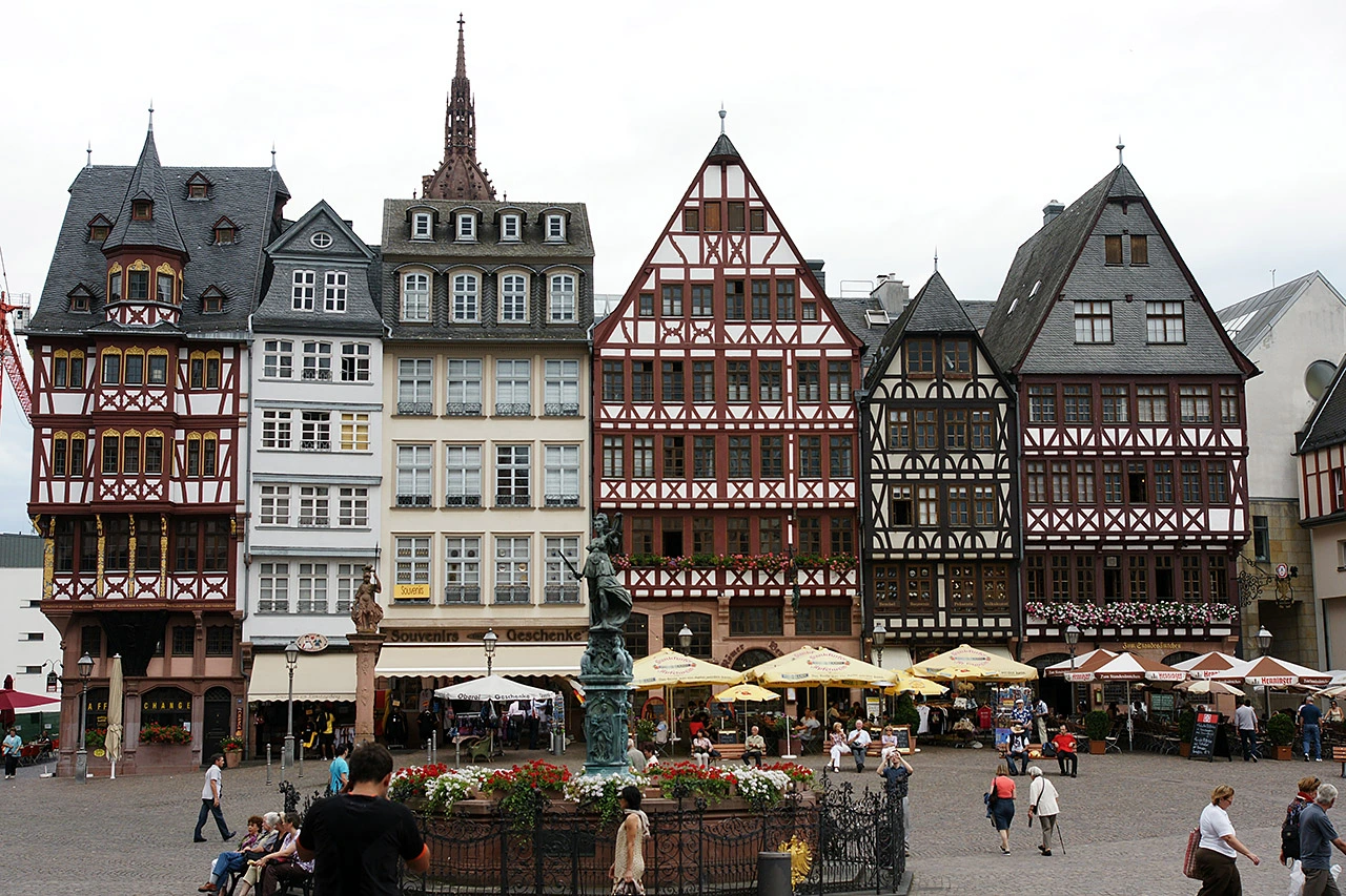 독일의 대도시는 오래된 건물이 그대로 남아 있는 경우가 드뭅니다. 그 이유는 바로 1. 2차 대전. 로켓을 발명하여 바다 건너 런던을 공습할 때 연합군이 바라만 보고 있을 리는 만무했습니다. 프랑크푸르트 역시 연합군의 반격을 피해 갈 수 없었습니다. 뢰머 광장도 2차 대전 이후 새로 복구되었지만, 프랑크푸르트를 대표하는 랜드 마크입니다. 광장을 중심으로 신성 로마제국 황제의 대관식을 거행했던 대성당, 아름다운 구시청사, 유스티치아 분수, 니콜라이 교회 등 프랑크푸르트의 옛 모습을 한자리에서 몽땅 만날 수 있는 장소가 바로 뢰머 광장입니다. 프랑크푸르트를 방문하고 뢰머 광장을 다녀가지 않았다면 앙꼬 없는 찐빵을 맛본 격이 되겠습니다.