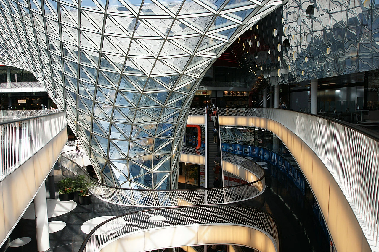 이 거리를 지나다가 유리에 구멍이 뻥 뚫린 독특한 건물을 한 번 찾아보세요. 워낙 눈에 뜨여 쉽게 찾을 듯합니다. 이 건물이 바로 My Zeil 이라는 쇼핑몰인데요. 겉보기보다 내부 인테리어가 더 멋집니다. 전통을 중시하는 유럽에서 잠시 미래로 온 착각이 들 만큼 모던한 장소를 만나는 일은 흔치 않은 경험입니다.