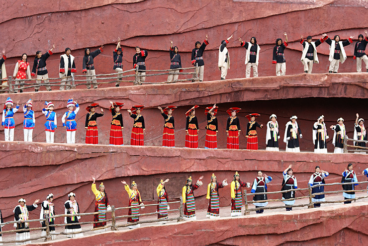 2003년 10월 인상유삼저의 대히트를 기록한 후 두 번째 프로젝트는 운남성에서 진행됩니다. 이번에도 많은 준비와 주민을 참여하는 것 등 유삼저의 기반을 그대로 도입합니다. 하지만 무대는 완전히 다릅니다. 이번 무대는 해발 5,596m 옥룡설산입니다. 그냥 먼발치에서 보는 산이 아니라 만년설이 그대로 보이는 산 바로 아래 무대가 만들어졌습니다. 감히 이런 생각을 하다니…. 중국 사람들의 스케일은 혀를 내두르게 합니다.