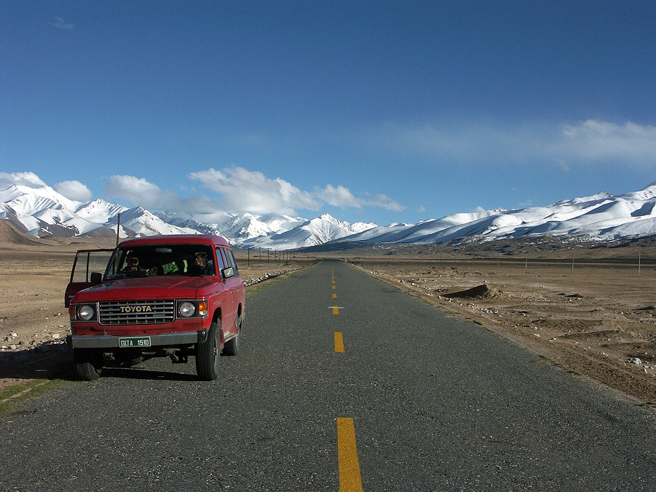 오후 4시 40분. 지루하게 끌던 국경 통과 절차가 끝나고 파키스탄에서 함께 출발한 차 3대를 중국 군인이 호위하여 또 함께 출발했습니다. 아마도 국경에서 타슈쿠르칸까지는 개인이 함부로 통행할 수 없나 봅니다. 국경 초소에서 타슈쿠르칸까지 근 200Km 구간은 1,500m의 고도차가 있습니다. 장대한 고원의 분지를 서서히 돌아내려 오는 이 길 역시 아름답습니다. 파키스탄에서 가파르게 솟은 검은색 산만 보다가 국경을 넘는 순간부터 부드러운 곡선의 누~런 산을 대할 때, 극명한 대비에서 오는 신비감이 더 커진 걸 겁니다.