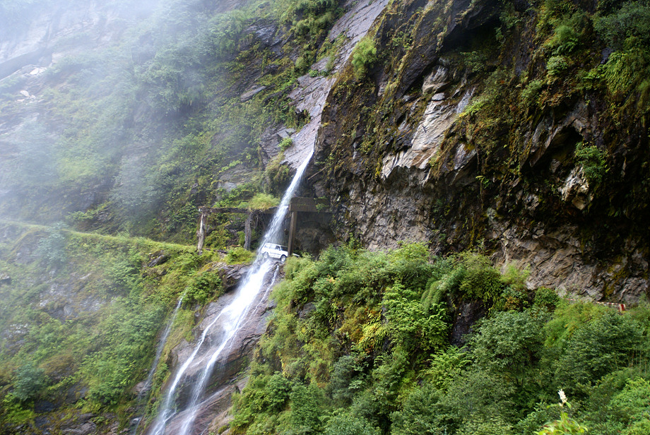 니알람을 지나면서부터 만년설 녹은 물이 길을 잃고 떠돌다 곳곳에 폭포를 만듭니다. 지나가는 길도 아슬아슬 비가 와도 이 길을 통행하기 어렵게 생겼습니다. 장무는 협곡의 중턱에 위태롭게 서 있는 도시입니다. 첩첩산중 갑자기 나타난 고층 건물이 비현실적인 생각이 들게 합니다. 멀리서 보면 그나마 예쁜 모습이 가까이 다가갈수록 어수선하여 정 부치기 어려운 곳이 분명합니다.