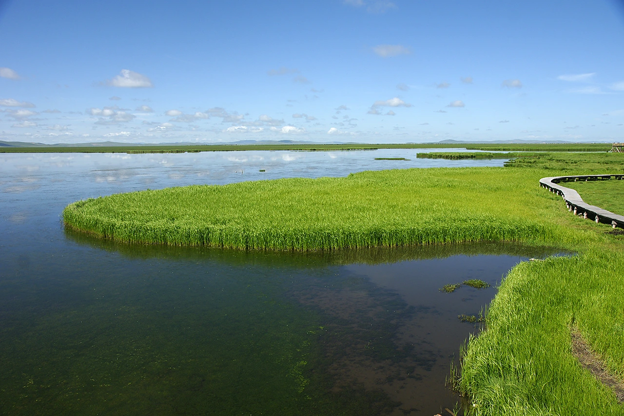 역시 화호는 기대를 저버리지 않았다. 자로 잰 듯 일직선으로 곧게 뻗은 초원과 경계가 없는 습지. 잘 다듬은 트레일을 따라가는 길은 콧노래가 절로 나온다. 이곳에 철새가 날아든다면 엄청난 관광자원으로 발전할 것이다. 너무 높은 곳이라 새가 살지 못할까? 갈대 속에서 오리 때를 발견하지 못해 조금은 아쉽다. 들꽃이 만개하는 초여름 모습을 상상하니 가슴이 두근거렸다. 다시 와야 할 곳 명단에 살며시 올려놓는다.