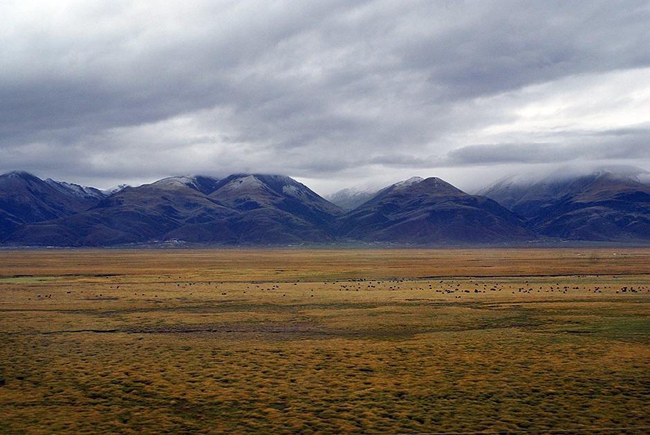 거얼무를 지나면서 천천히 고도가 높아져서 탕구라 산맥을 넘을 때 고도는 해발 5,072m…. 세상에서 가장 높은 기찻길입니다. 눈이 내리다가 비가 오고 언제 그랬냐는 듯 날이 갭니다. 하루에 사계절을 다 만나는 여행입니다.