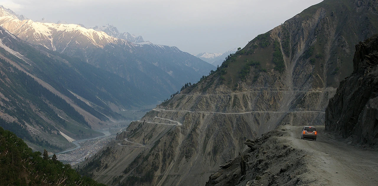 이제 지긋지긋한 고개 넘기도 막바지에 이르러 갑니다. 이 무렵쯤이면 모든 길이 다 그러려니 하고 체념의 상태에 빠지지만 카길에서부터 소남마르그까지 가는 길도 만만한 길이 아닙니다. 신기한 것은 모든 길의 풍광이 거짓말처럼 다르다는 것입니다. 자연의 신비를 레, 라닥의 길에서 체험하게 되실 겁니다. 소남마르그에서 스리나가르 근처까지 내려오는 길은 알프스를 연상시키는 장관이 또 펼쳐집니다.