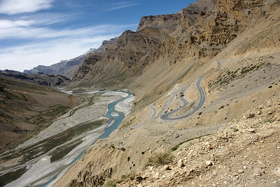 새벽 2시나 3시경 예약해 둔 승합차를 타고 마의 고개를 넘습니다. 동틀 무렵 이틀 전 다녀왔던 로탕패스를 넘기 때문에 아침나절이 되면 머리가 아프거나 멀미가 날 겁니다. 그래도 눈앞에 펼쳐지는 경관 때문에 정신이 좀 없을 겁니다. 가는 길에 아무 데서나 볼일도 보고 작은 동내가 나오면 아침도 먹고 갑니다. 쉼 없이 달려 점심 무렵이 되면 지금까지 보지 못했던 황량한 풍광과 시야를 압도하는 거대한 고개를 만나게 됩니다. 꼬불꼬불 지나온 길을 보면 한숨이 나옵니다. 아마 점심은 산해진미를 드려도 넘기기 어려우실 겁니다. 컵라면 준비하여 속을 달래 보십시오.