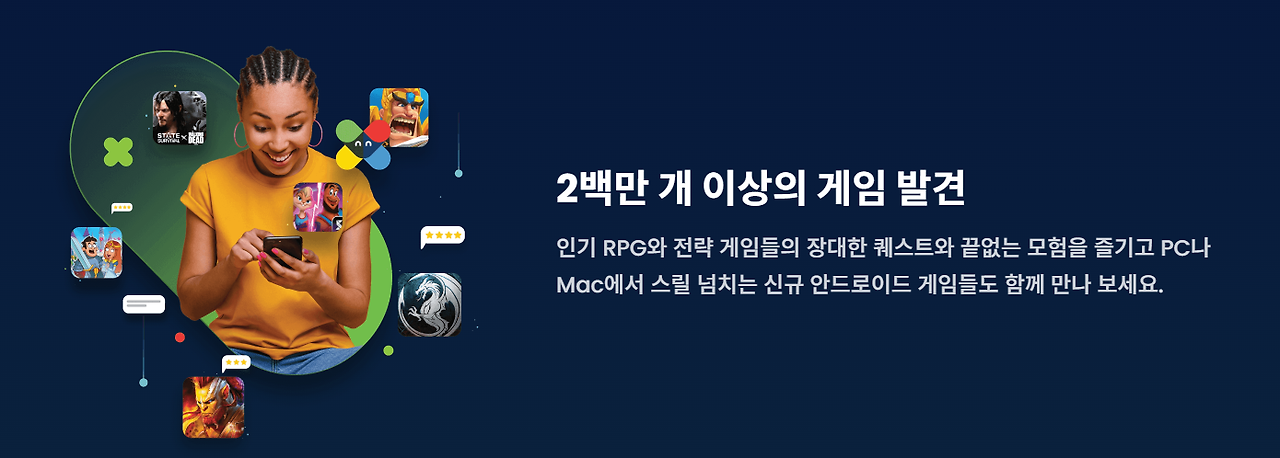 블루스택 다운로드하고 실행하면 메인 화면에 구글 플레이스토어가 보인다. 여기서 모바일에서 하던 것처럼 게임 검색하고 설치하면 된다. 리니지M, 배틀그라운드 모바일, 원신 같은 고사양 게임도 PC에서 매끄럽게 돌아간다.