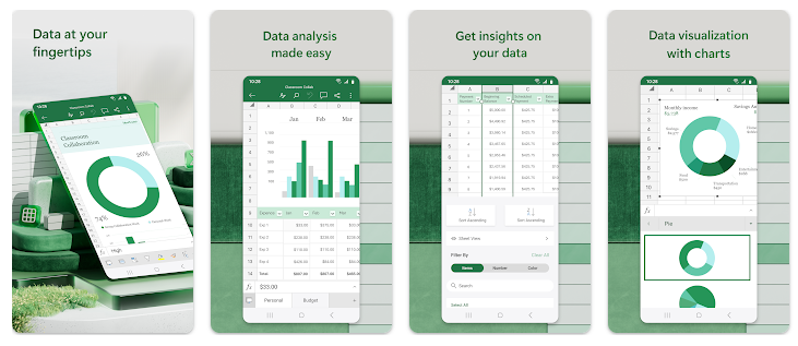 마이크로소프트에서 직접 만든 안드로이드 전용 엑셀 앱입니다. 호환성과 안정성에서는 따라올 앱이 없습니다.