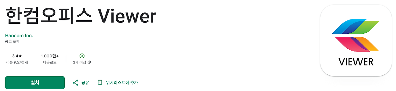 스마트폰에서 HWP 파일 열 일이 생겼다면 플레이스토어에서 바로 받으면 됩니다.