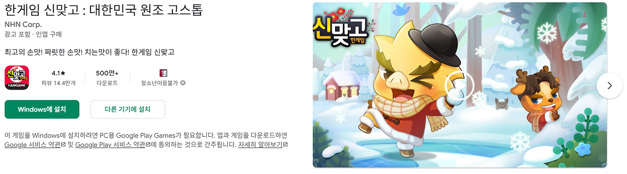 스마트폰으로 즐기고 싶으시면 앱스토어에서 받을 수 있어요. 한게임 고스톱으로 검색하면 바로 나옵니다.
