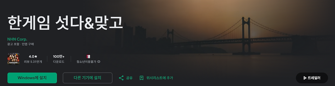 포털에서 "한게임 맞고" 검색