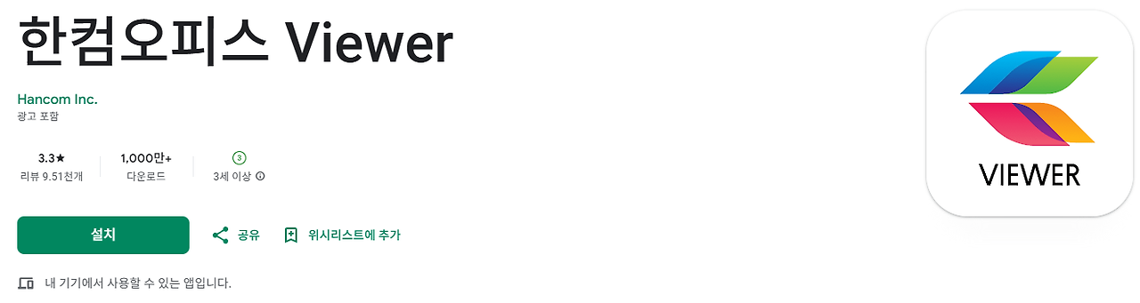한컴오피스 Viewer: 한컴 공식 앱, HWP부터 PPT, PDF까지 멀티포맷 지원, 무료지만 광고 있음