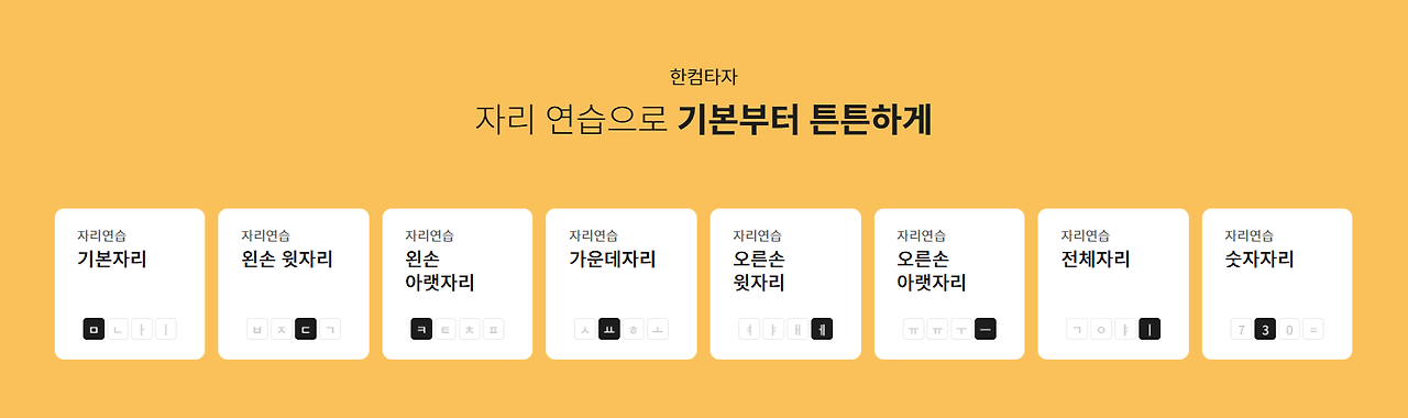 자리 연습, 낱말 연습, 짧은 글 연습, 긴 글 연습 제공