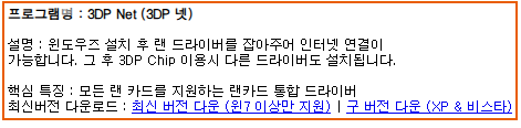 모든 랜 드라이버를 포함하고 있어, 윈도우 포맷 직후 인터넷이 안되는 컴퓨터를 손쉽게 인터넷 연결 가능하도록 해줌