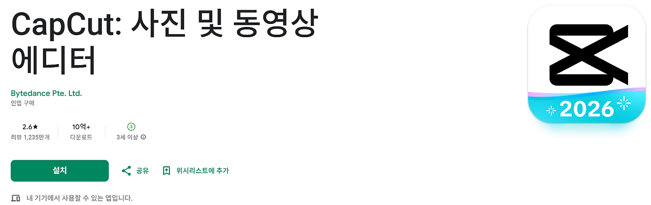 중국의 인터넷 서비스 기업 바이트댄스가 개발한 동영상 편집 서비스입니다. 틱톡 개발사가 만들어서 SNS 영상 제작에 특화되어 있어요.