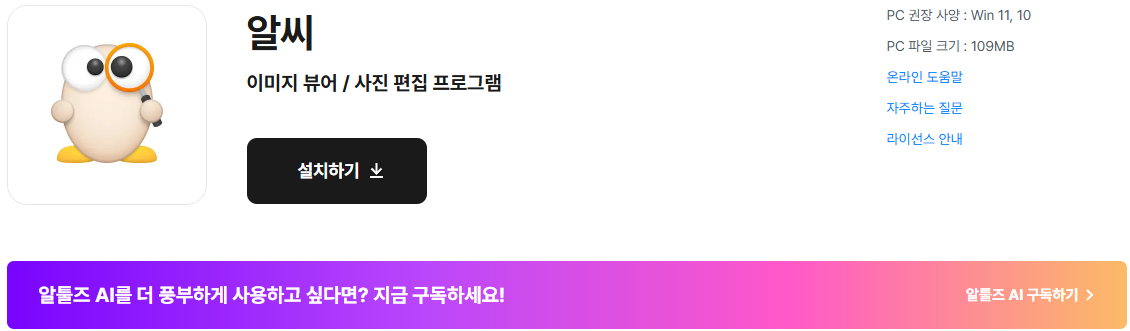 • 알씨 최신 버전 다운로드 클릭 (v9.51 기준)