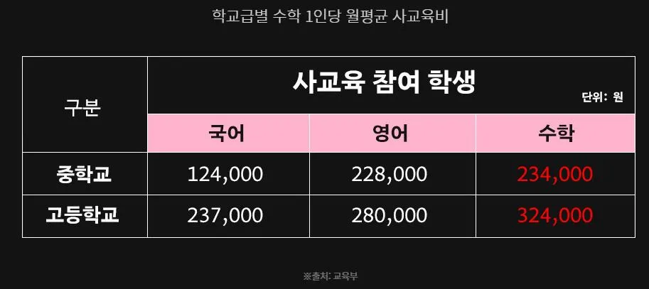 교육부가 지난 3월 발표한 2020년 초·중·고 사교육비 조사를 보면, 사교육 참여 학생 1인당 월 사교육비는 중학교 49만 2000원입니다. 대한민국의 중위 소득 가구 기준으로는 무려 21%이며 중고생 자녀를 둔 40~50대 가정으로 치더라도 평균 소득 대비 11% 이상을 월 교육비로 지출하는 셈입니다. 대한민국에서 자녀를 위한 평범한 삶을 살아간다는 것은 어떤 의미일지 곰곰이 돌이켜 보게 됩니다.