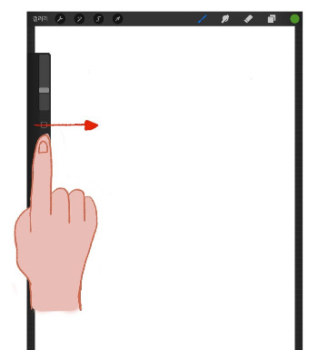 사이드바는 초기에 캔버스 왼쪽에 위치하는데, 여기에서 브러시의 크기, 투명도를 조절할 수 있다. 그림을 그리면서 브러시를 크게 사용할때도, 아주 미세하게 작게 사용할때도 있다. 또한 투명도를 조절하여 브러시를 반투명하게 사용하여, 아랫쪽 레이어나 앞에 그린 그림 윗쪽에 반투명하게 채색할 수도 있다. 사이드바의 윗쪽 슬라이더는 브러시의 크기를, 아랫쪽의 슬라이더는 브러시의 투명도를 조절한다.