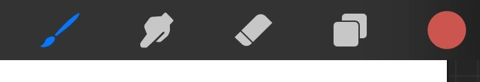 오른쪽에 위치한 다섯개의 아이콘들은 이미 열린 캔버스 위에 그림을 그리는 가장 중요한 다섯개의 페인팅 툴이다. 그림을 그리다보면 가장 빈번하게 사용된다. 여기에서는 맛보기로만 기능을 훑어 볼 것이다. 기초적인 단계이므로, 굳이 읽지않고 넘어가도 상관없을 것이다. 펜슬과 손가락을 이용하여 그림을 그리는 초보적이고도 직관적인 내용이다. 하지만, 포토샵을 다뤄본 일이 없거나 그림앱을 처음 사용하는 사용자는 한번쯤 읽어보면 전체적인 앱을 이용하는데 도움이 될 것이다.