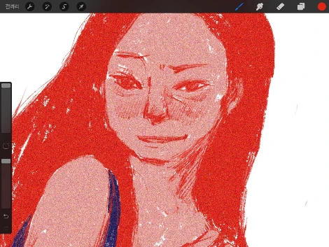 디지털 컬러 다루기 I에서는 프로크리에이트에서 제공하는 컬러인터페이스에서 컬러를 선택하는 방법을 알아보았다. 컬러인터페이스를 통해 선택할 컬러를 브러시에 적용하고, 그 브러시와 지우개, 스머지 등을 통해 그림을 그렸다면, 각기 레이어에 그려진 그림에 특별한 효과 또는 컬러조정이 필요할 때 어떻게 해야하는지를 이번 장에서 다룰 것이다. 이미지의 컬러수정을 위해 프로크리에이트는 조정메뉴에 다양한 기능을 모아두었다. 이것은 포토샵안에서 자주 사용하는 필터 및 이미지 메뉴의 일부를 떼어놓은것과 비슷하다. 하나씩 꼼꼼히 살펴보자.