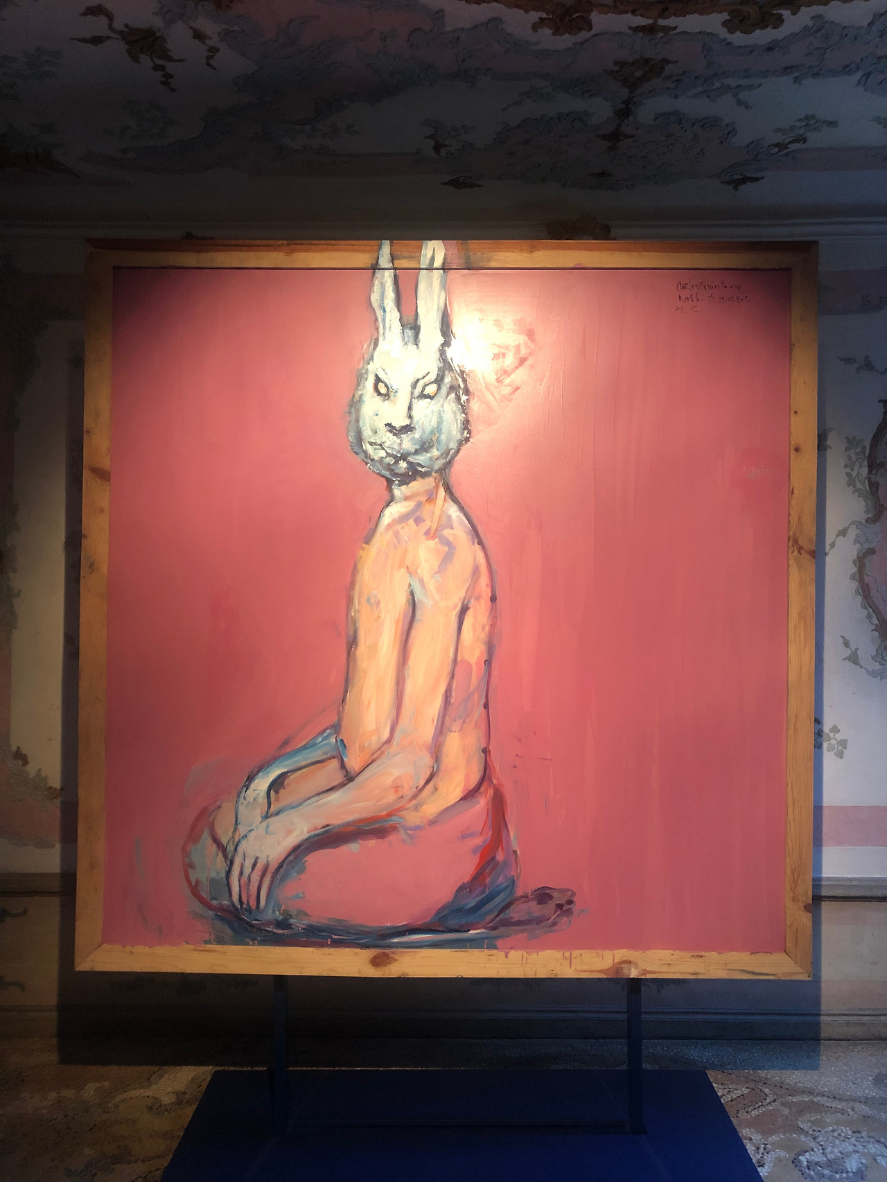 윤형근전을 본 포츄니 팔라조 부근에 이란 전시장(비엔날레)를 굳이 찾아가 보았으나 문이 굳게 닫혀있다.(다같이 비엔날레 국가관도 휴무인가 보다). 바다건너편의 구겐하임 컬렉션을 볼까해서 걷는 도중 ... 광장 부근에 흥미로운 회화 포스터가 있길래 얼른 들어갔는데, 쿠바작가 카를로스 퀸타나(Carlos Quintana)의 전시장이었다. 쿠바사람도 그림을 그리는구나가 첫번째 들은 생각이었고, 회화적 압도감이 느껴지는 작가구나 싶은 것이 두번째 생각.