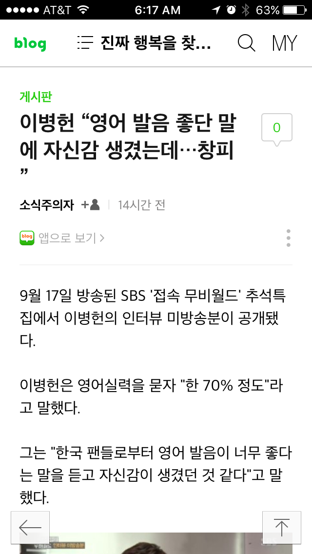 기사에도 나오듯 발음이 좋다는 소리에 자신감을....