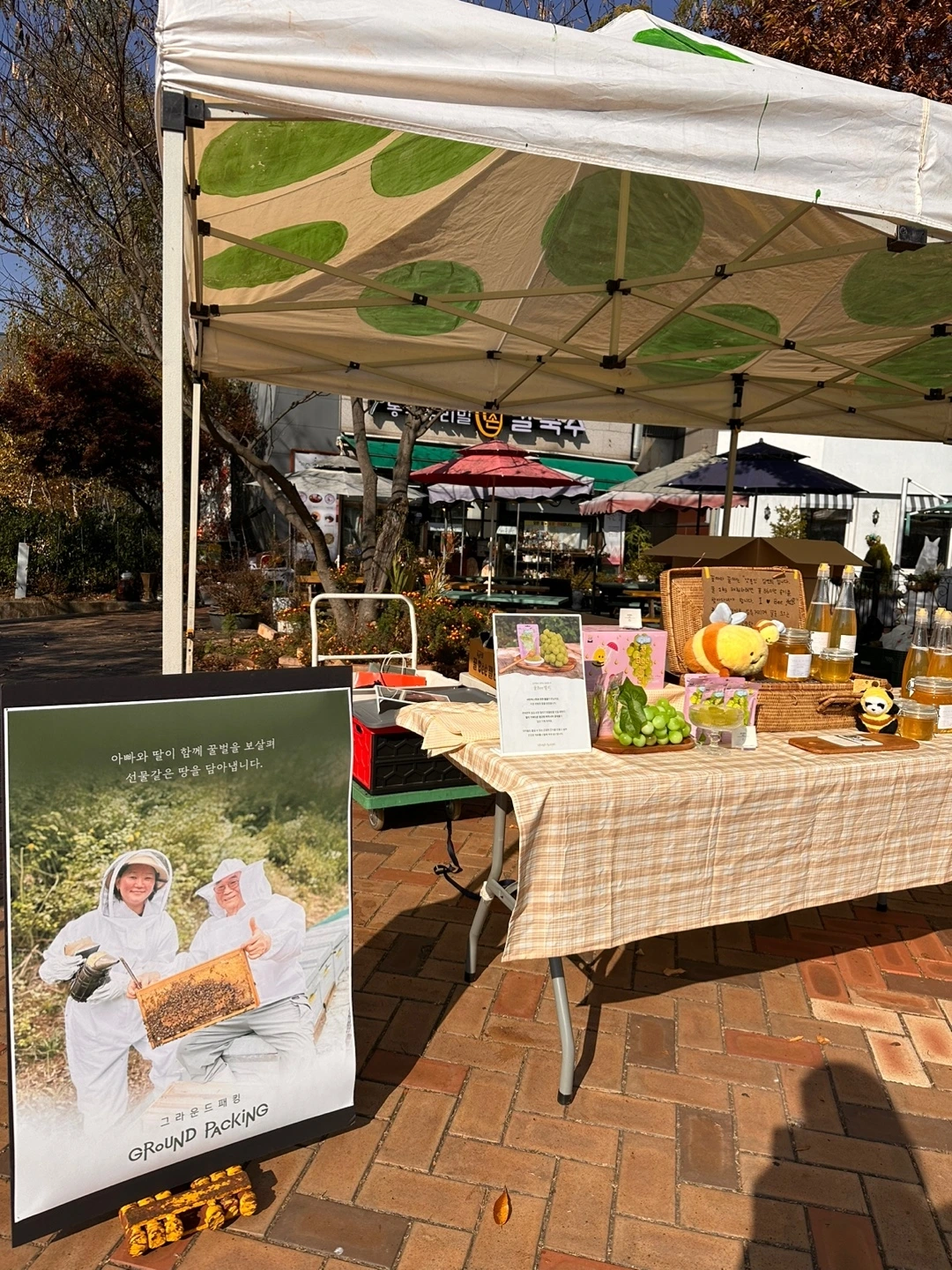 꿀을 담는 패키지를 예쁘게 만드는 것과 저희 이야기를 알리는 홍보물도 중요해요. 최근 저희 이야기를 담은 홍보물을 제대로 만들었어요. 전문 디자인 스튜디오의 도움을 받았고, 양봉장에서 아빠와 제가 작업하는 모습과 제품 사진을 예쁘게 찍어서 넣었어요. 그 리플릿과 명함, 포스터를 지난 마켓에서 처음 사용했는데, 그 덕분인지 매출이 크게 늘었어요.