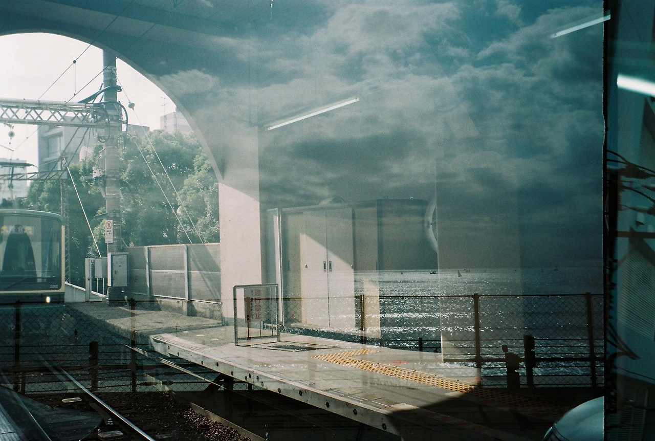 필름카메라를 사고 처음 찍었던 사진. 필름 사용법에 익숙하지 않아 실수를 해서 철길 사진과 바다 사진이 겹쳐져 버렸다. 그래도 나름 운치있지 않은가? 철도와 바다가 절반씩 나와 한 사진에서 가마쿠라를 느낄 수 있다. 라고 포장할 수 있을정도로 필름카메라로 찍는 사진들은 나름의 분위기가 있다.