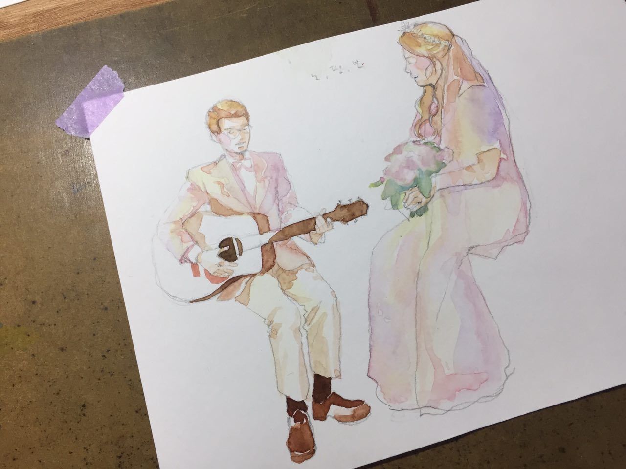 수정이 어려운 수채화를 정말 고민하고 조심해서 그려두고