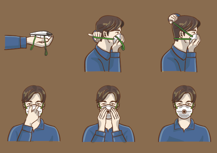 마스크 사용방법 6컷 일러스트 작업입니다.