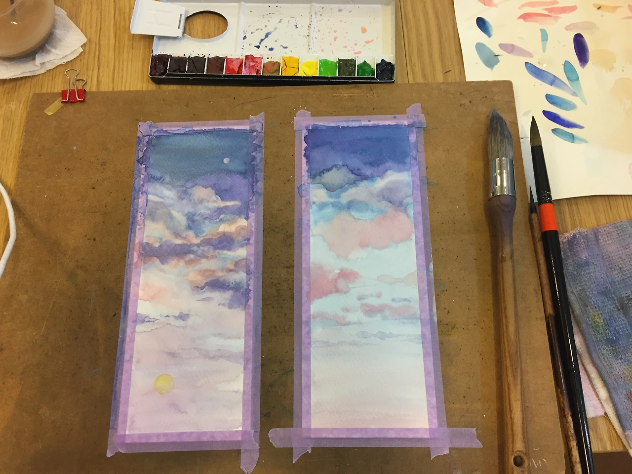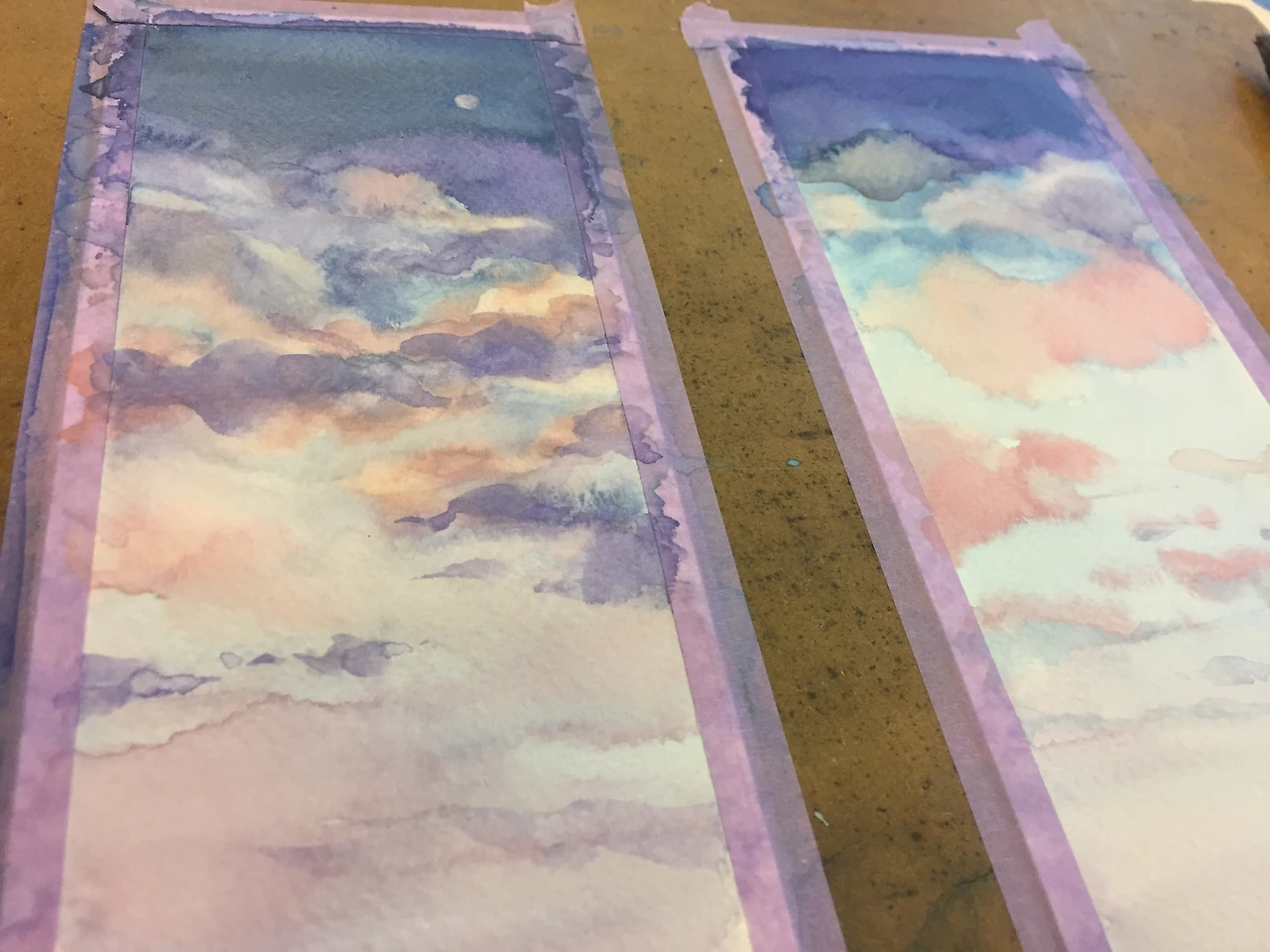 틈과 틈사이에 작업하는 하늘 수채화.