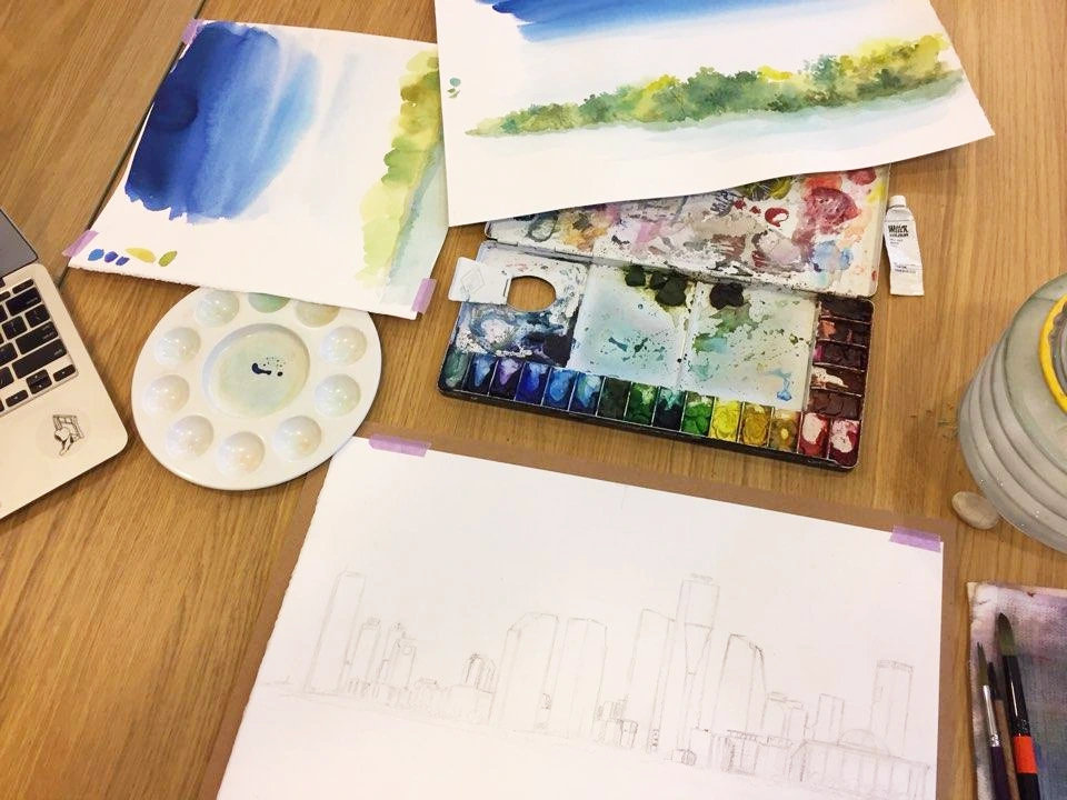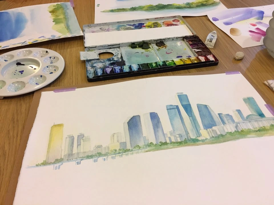 인쇄할 포스터 사이즈를 고려하여 수채화 원화도 크게 그려졌어요.