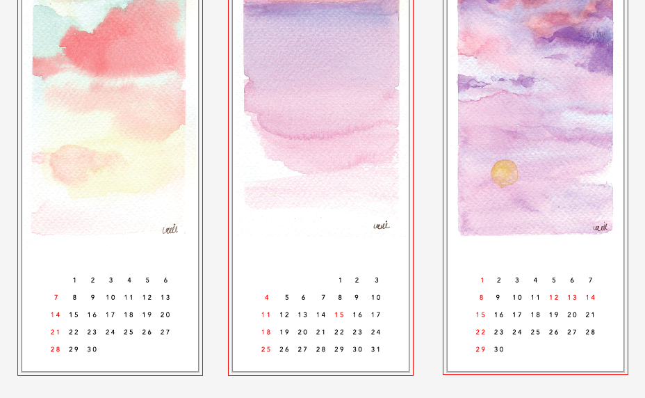 조금씩 그렸던 수채화 하늘 그림을 추려서 2019년 달력을 만들어보려고 해요.
