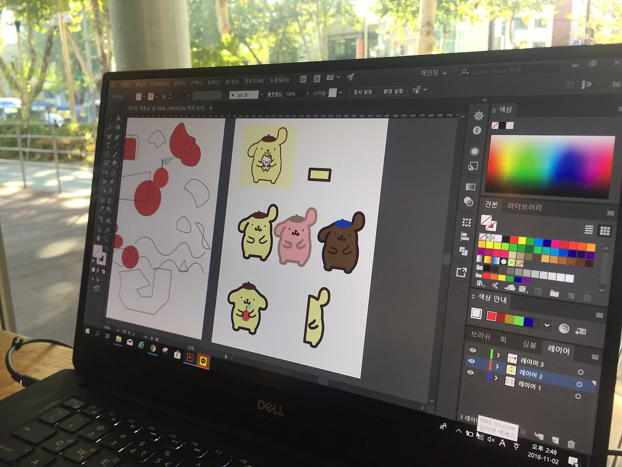비가 오는 가을의 어느 날의 일러스트 수업.