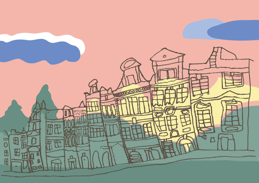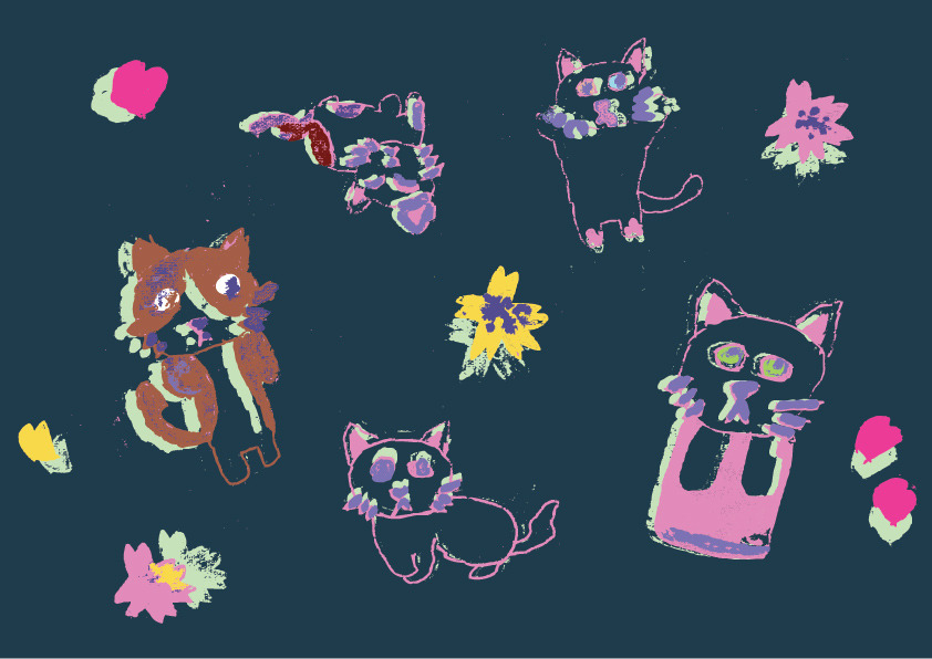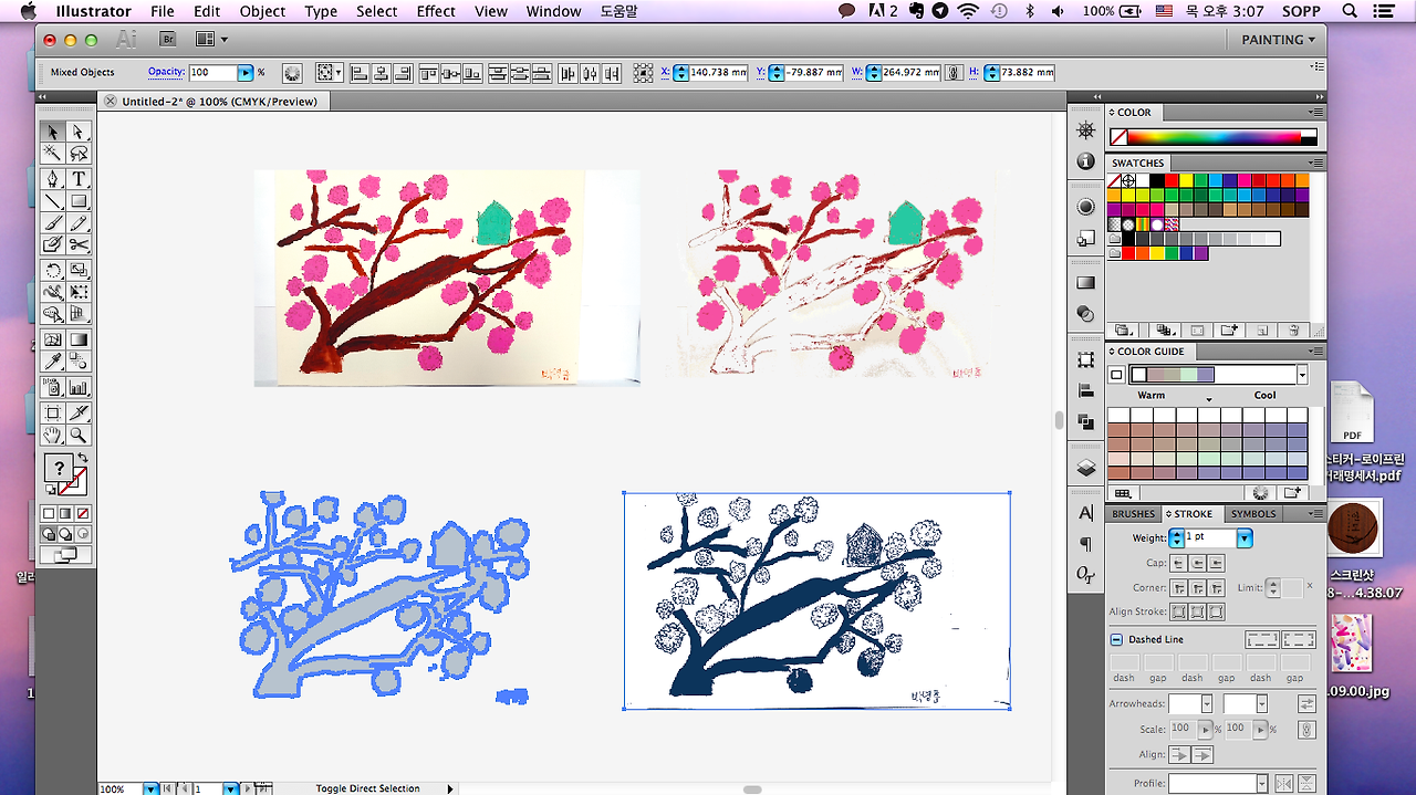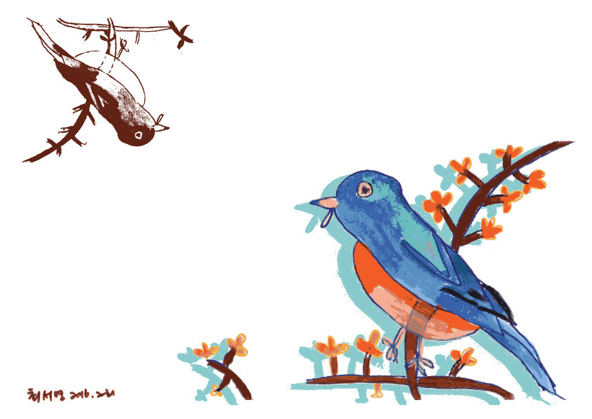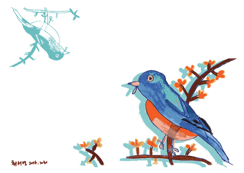 붓의 터치감은 그대로 살리면서 판화의 레이어드 되는 색감에서 영감을 받아 색을 얹어 보았어요.