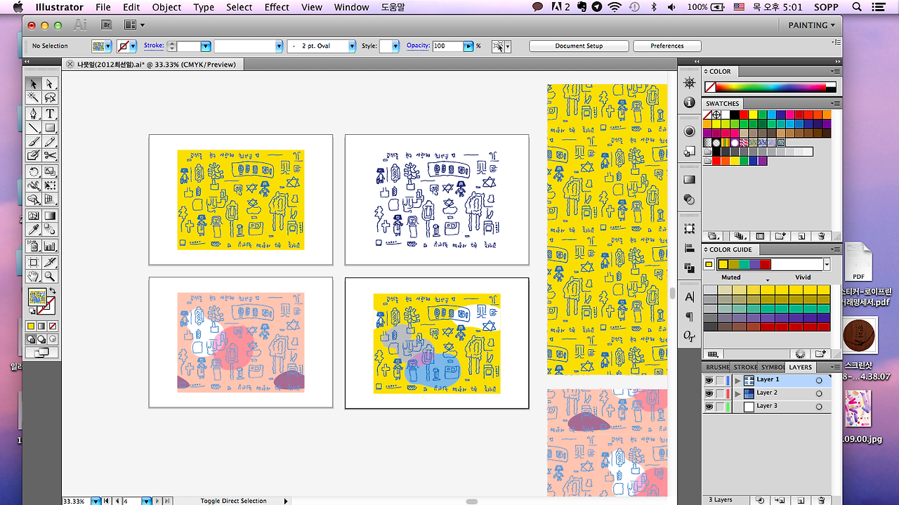 라인드로잉이었던 작품은 패턴디자인으로 풀어내었습니다.