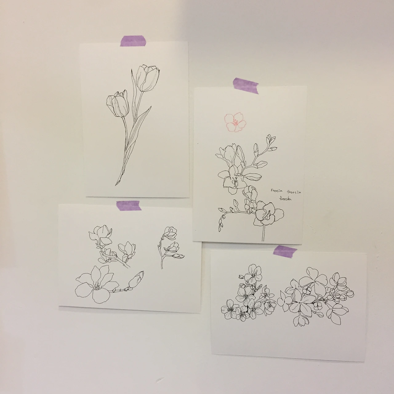 종이에 펜으로 봄 꽃을 그렸어요 :)