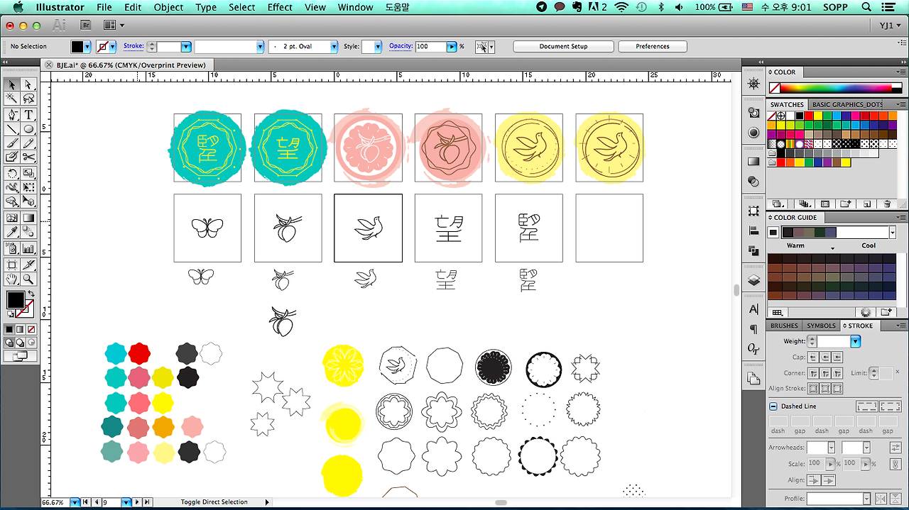 그리하여 도장이 컨텍되고 다시 시작된 디자인 수정.