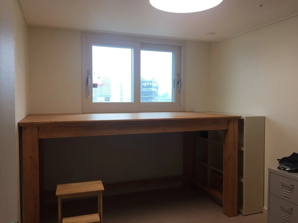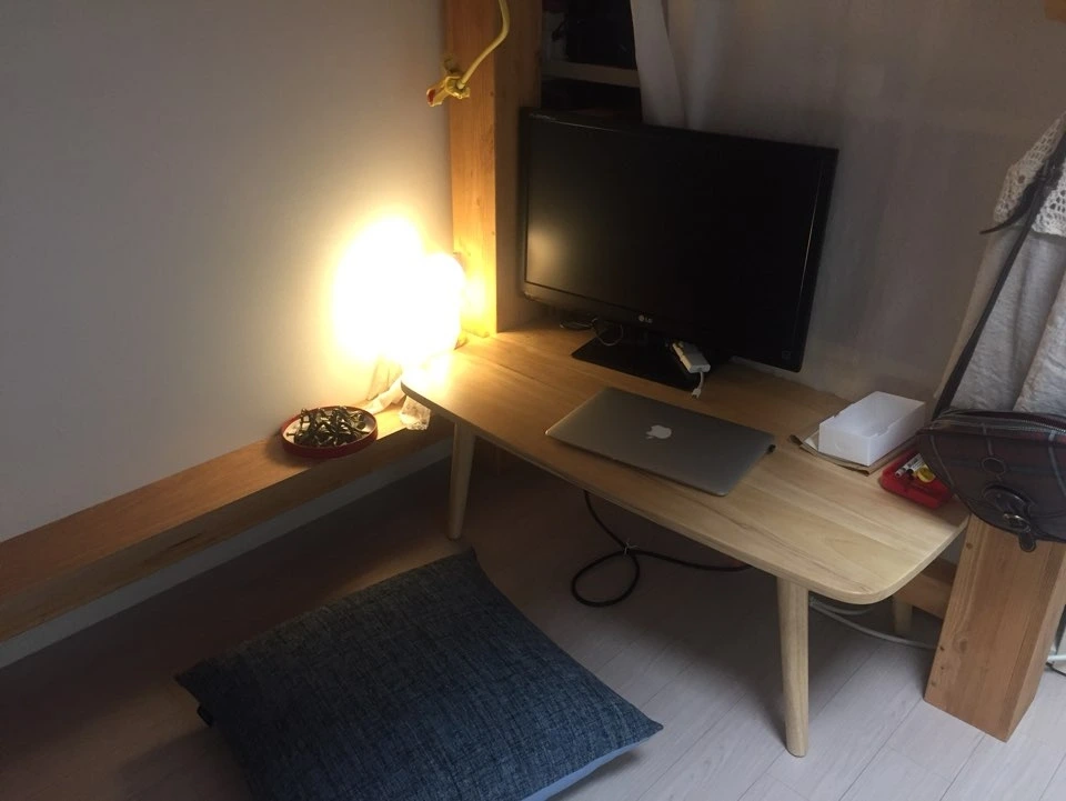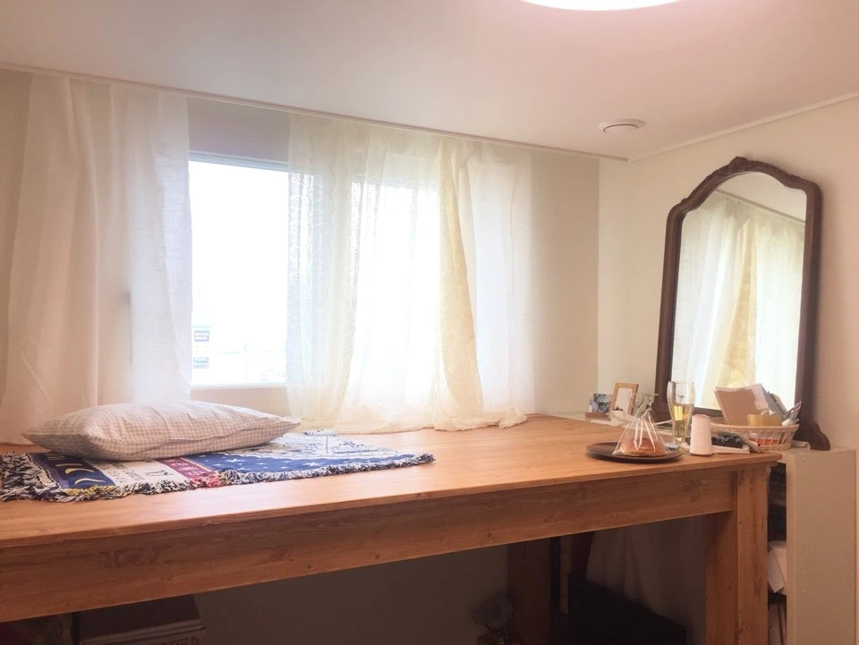 작은 공간에는 원목 색상이 밝은 게 덜 답답해보이고 좋다고해요 :)