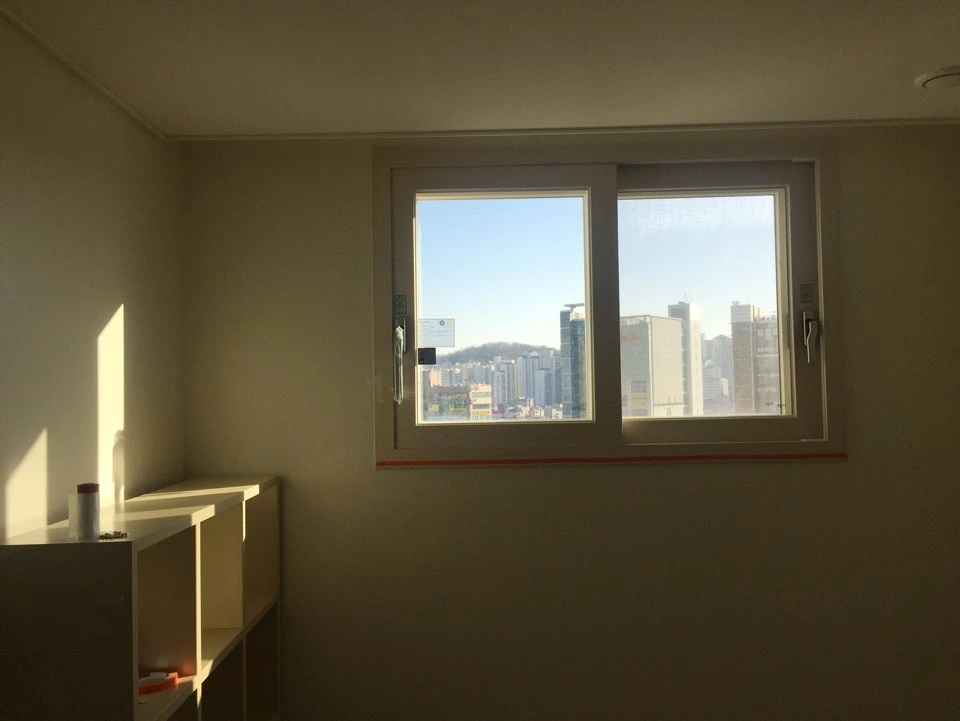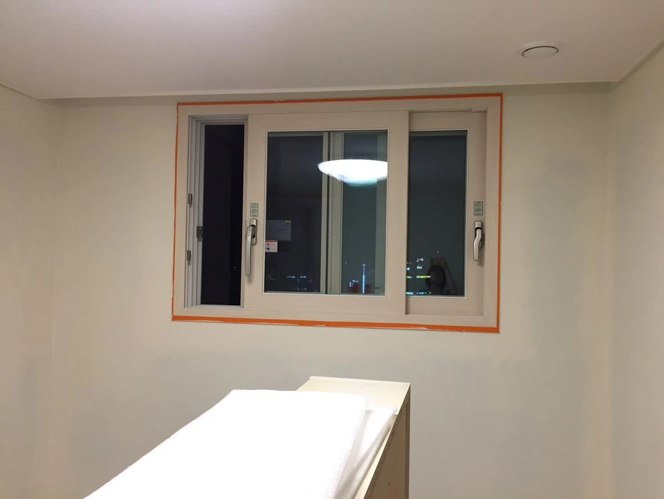 창문에 창가 근처에 가구를 배치하지 말라는 경고문이 있었어요.