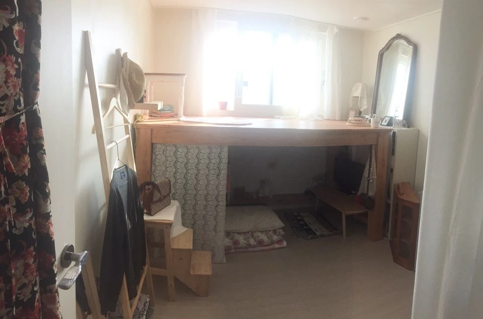 벙커침대로 위 침대 아래 좌식 책상 이런 구조를 살짝 변형한