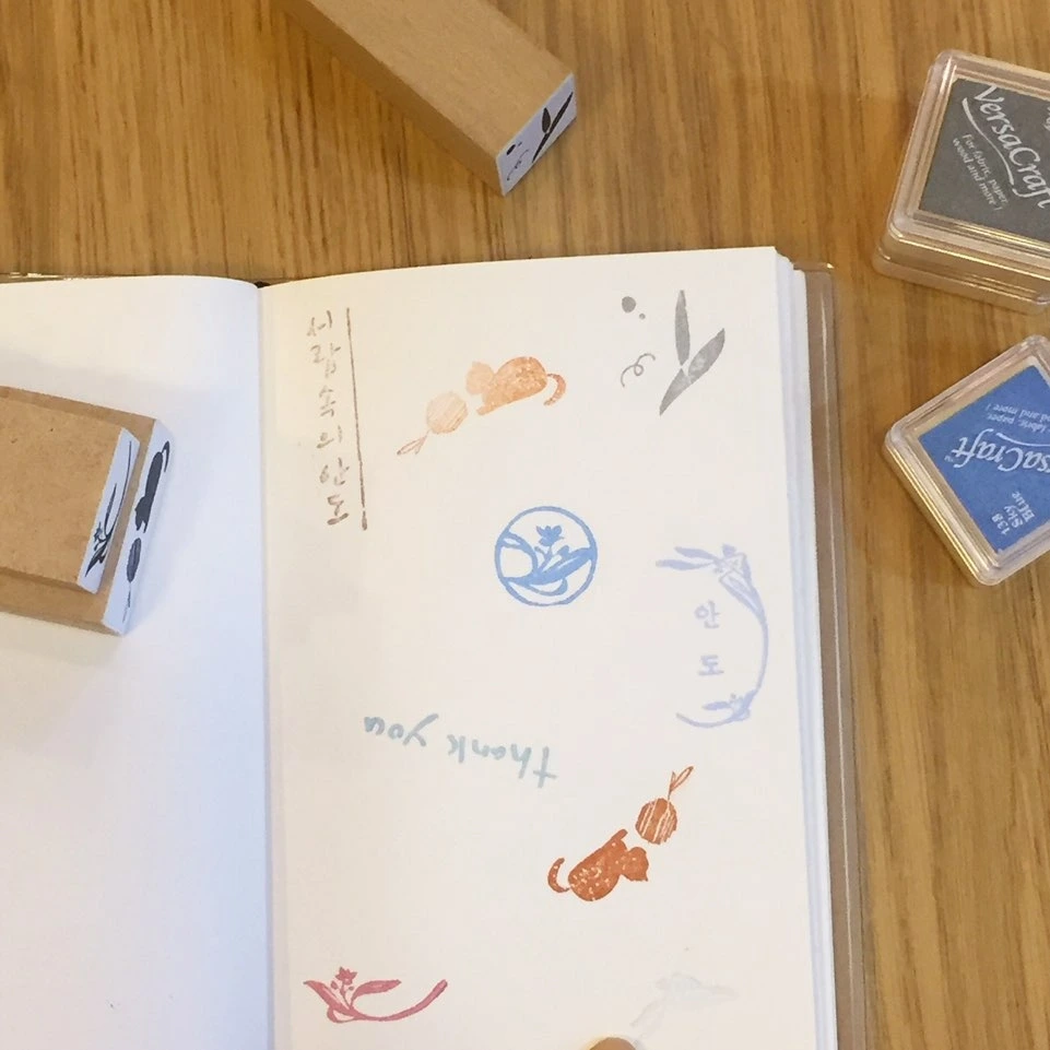 잉크 패드가 없다면 넓은 사인펜으로 슥슥 칠해서 찍으면 수채화 분위기가 납니다. ㅎㅎ