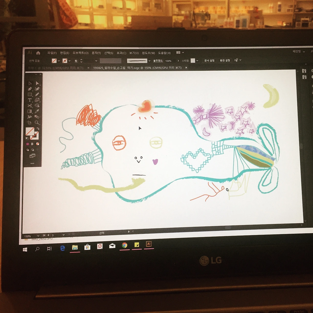 수강생님께서 직접 그린 멋진 드로잉을 일러스트로 옮겨 벡터화 하는 방법과 디자인하는 팁을 나누었어요.