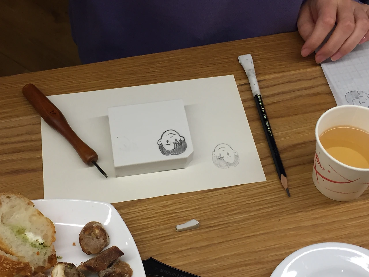 처음에는 조각하는 것을 어려워 하시는 듯 보였으나 차차 손의 감을 익히면서.