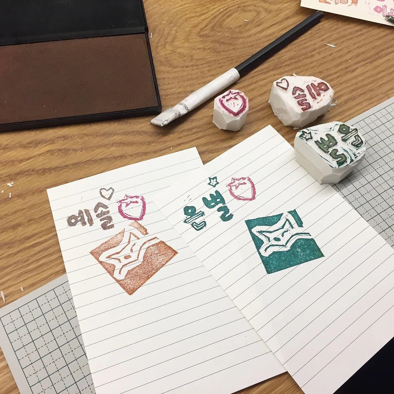 중간점검 차 잉크를 묻혀 종이에 콩하고 찍을 때 "와~~~" 하는 감탄사들 :)