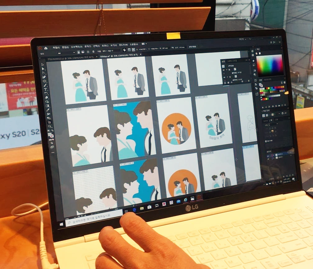 옆에서 대원님께 좋을 방법을 제안드리기도 한답니다. 일러스트툴은 도구일뿐 결과물을 뚝딱 만들어주지 않아요. 그렇기 때문에 도구를 활용하는 방법은 무궁무진. 작가님들마다 다른, 작업 스타일만큼 정답이 있는 것이 아니라 스스로에게 더 적합한 방식을 찾아갑니다. 제가 툴을 다루며 느낀 점들, 도구들의 이점을 안내드려요. :-)