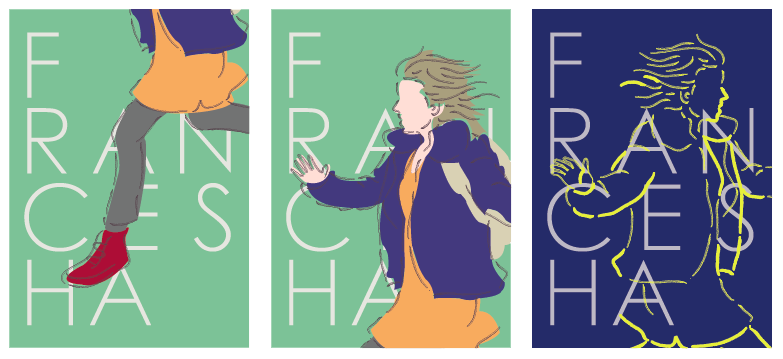 고민 고민하시던 대원님께서 선택한 것은 좋아하는 영화 속 한 장면을 일러스트로 그린 후 포스터 디자인으로 완성하는 것이었어요. 엽서가 아닌 포스터를 선택하신 것을 보고 대원님의 취향을 유추할 수 있었답니다. ㅎㅎ 그렇게 하여 선택된 영화는 바로 <프란시스 하>