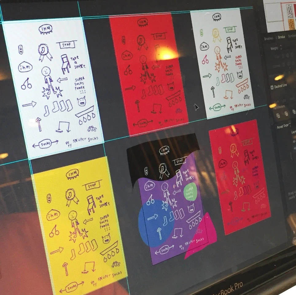 스티커 만들기를 목표로 그림소스를 제작하기도 하고 직접 손으로 그린 드로잉을 바탕으로 구성, 배열, 배색을 고민하며 자유롭게 디자인해봅니다. 그리고 인쇄소에서 요구하는 사항에 맞춰 최종 인쇄파일 만들기까지하면 완전히 마무리 단계에 이릅니다.