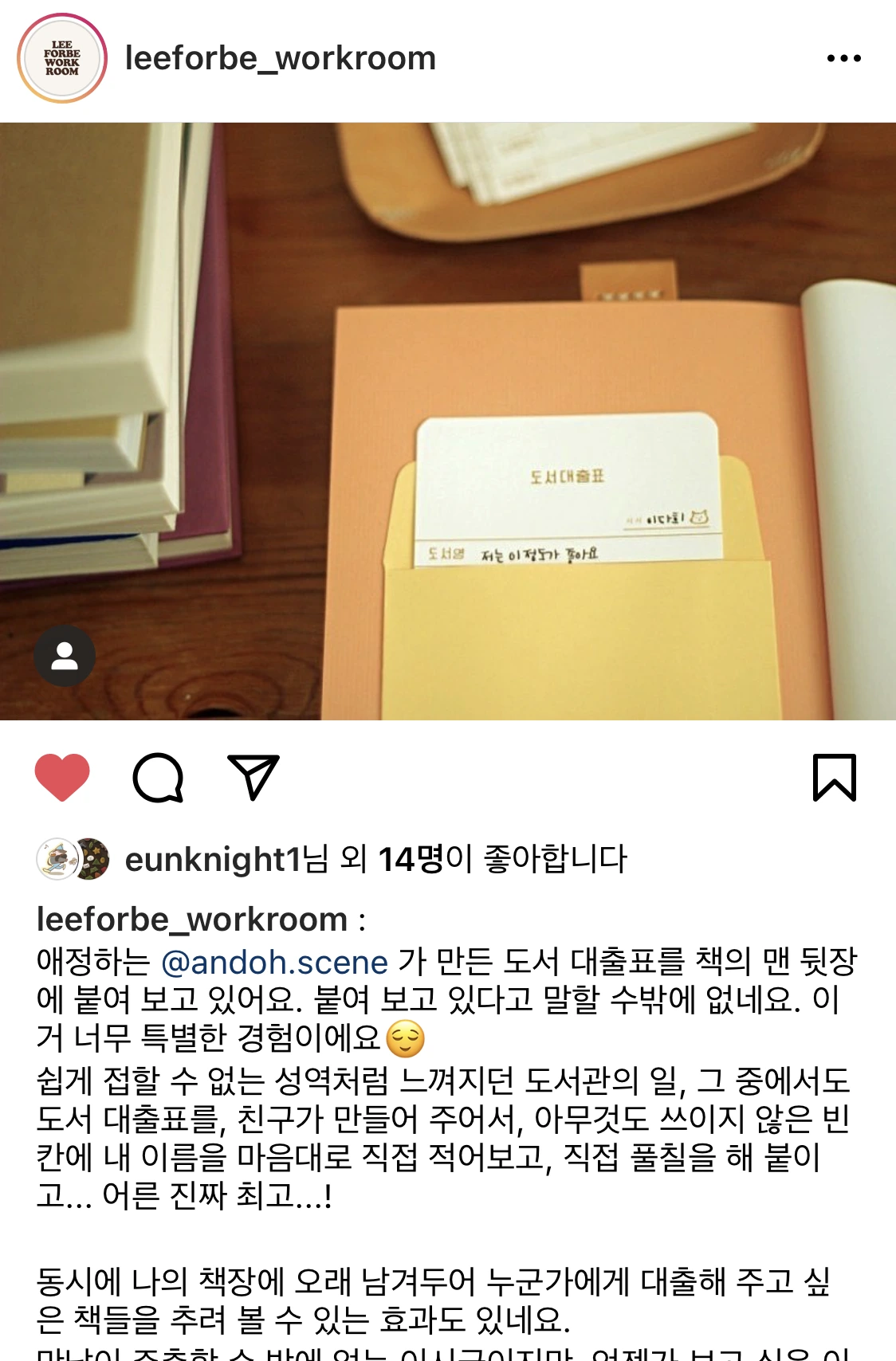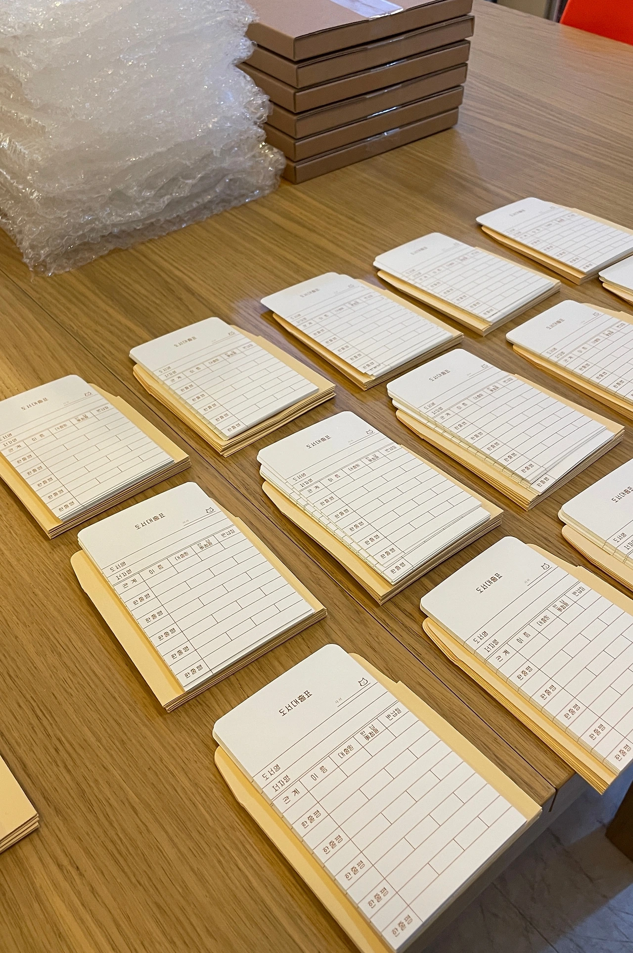저의 도서대출표 텀블벅 프로젝트는 무산되었지만 당시 후원해주신 분들의 성원에 힘입어 개인적으로 예약을 받아서 소량 제작하게 되었습니다. 두번의 예약 때문에 긴 시간 기다리게 해드려서 죄송하고 또 감사한 마음이에요. :) 3월 말에 한꺼번에 출고되었고 받자마자 리뷰 사진들을 보내주셔서 기쁜 마음으로 구경하였어요. 소중하고 나누고 싶은 개인의 책들에 반듯하게 붙여져 있기를-.