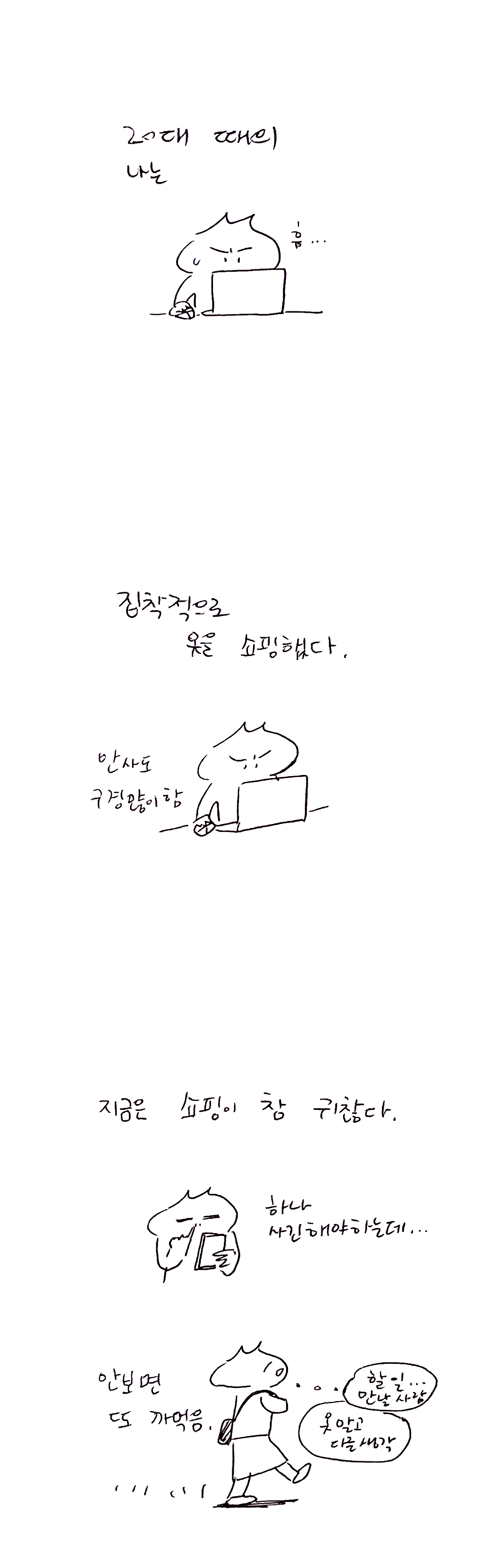 2021년도에 그려두고서 잊거나 뭔가 분량이 부족해서 올리지 않은 만화를 편집 후 묶어서 올려봅니다. :) 날 것 그대로의 낙서도 있고 머릿 속을 떠도는 것을 그리기도 했어요. 짧은 4컷만화 보듯 보아주세요-