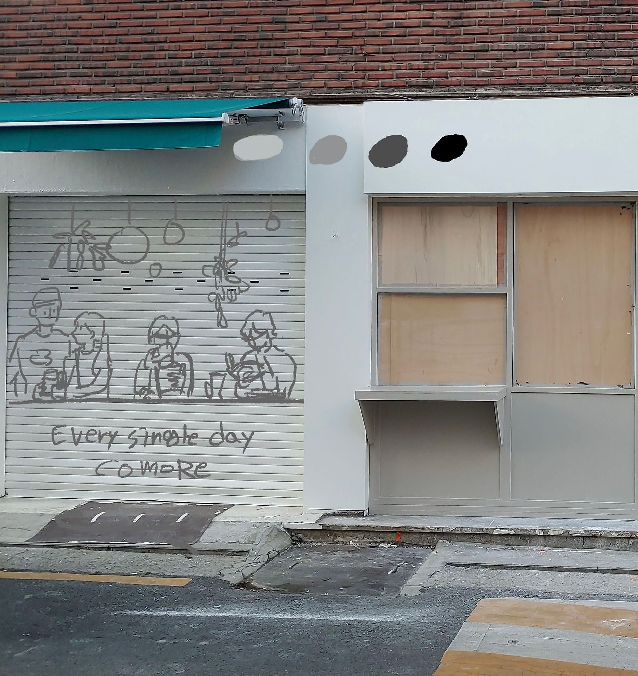 1월 말, 2월 초 ... 추워서 날이 풀리기를 기다리다가 정오를 기준으로 온도가 영상으로 오르던 어느날. 드디어 벽화 작업을 하러 출동! 걱정이 많은 저는 벽화 작업을 앞두고 마음 편할 날이 없었어요. 시뮬레이션만 30번은 머릿속으로 반복 또 반복... 몸으로 움직이면 별 일이 아닐거라는 것을 알지만 너무나 제대로 잘하고 싶었거든요.